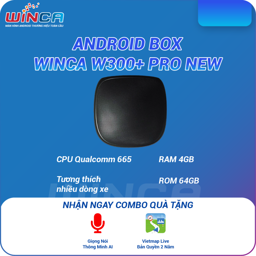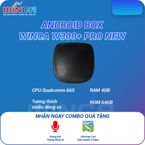 Winca Android Box W300+ Pro New là thế hệ Android Box mới nhất, lắp đặt được hầu hết các dòng xe đời mới 2022. Winca Android Box W300+ Pro sở hữu CPU Qualcom 665 và RAM 4GB cho tốc độ xử lý mượt mà, ổn định
